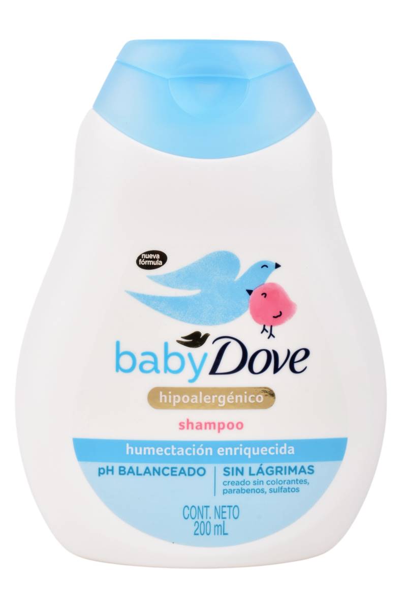Shampoo Dove Baby Humectación Enriquecida por 200ml, su fórmula esta diseñada para mantener el cuero cabelludo de tu bebé suave y humectado