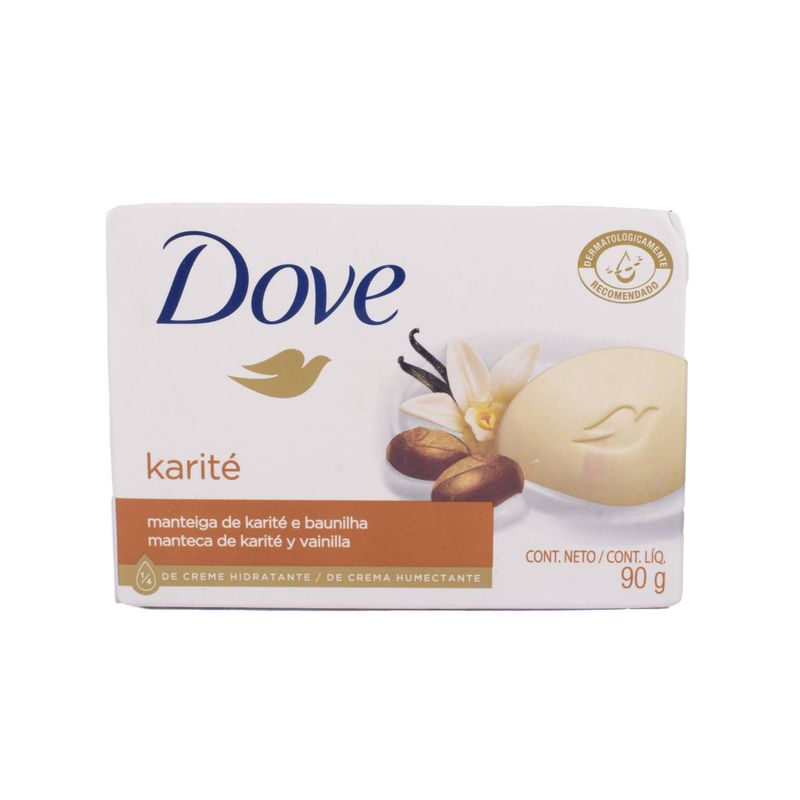Jabón de tocador Dove Karité-Vainilla por 90g, barra de belleza con aceite de Karité y perfume de Vainilla, un suave despertar para tu piel y mente.