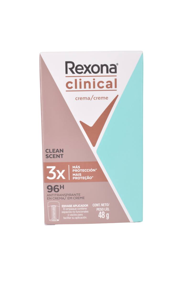 Desodorante femenino en barra Rexona Clínica Clean Scent por48g, provee 3 veces más protección que un antitranspirante básico.