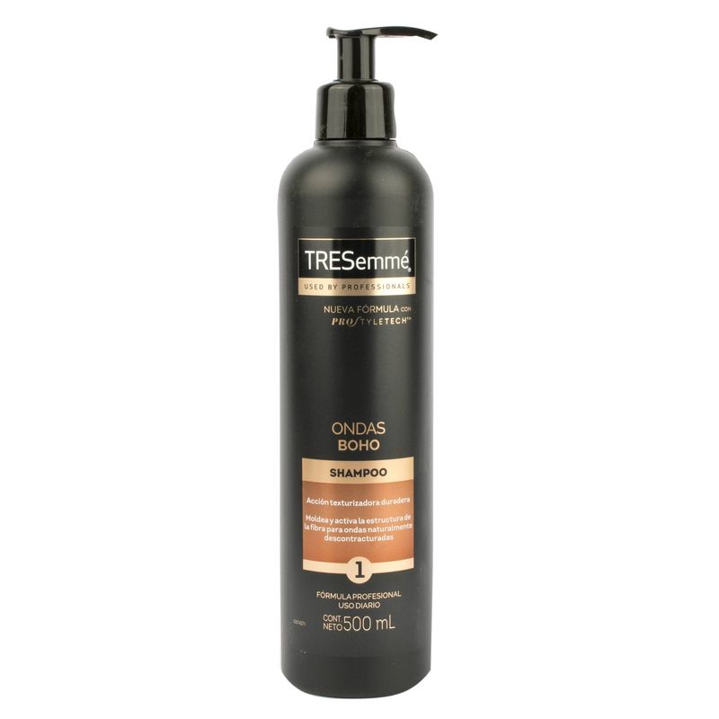 Shampoo Tresemmé Ondas Boho, de acción texturizadora duradera. Moldea y activa la estructura de la fibra para crear ondas naturalmente descontracturadas