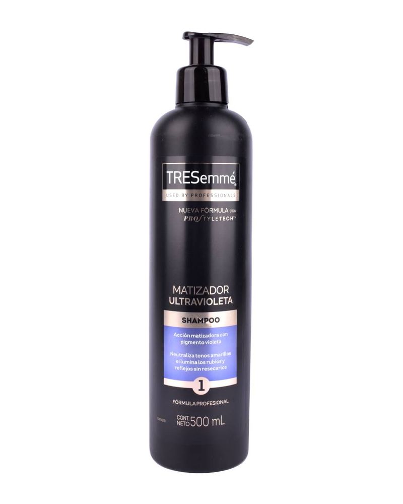 Shampoo Tresemmé. Este producto para el cabello posee una acción matizadora con pigmentos violetas. Neutraliza tonos amarillos e ilumina los rubios y reflejos sin resecarlos.Características