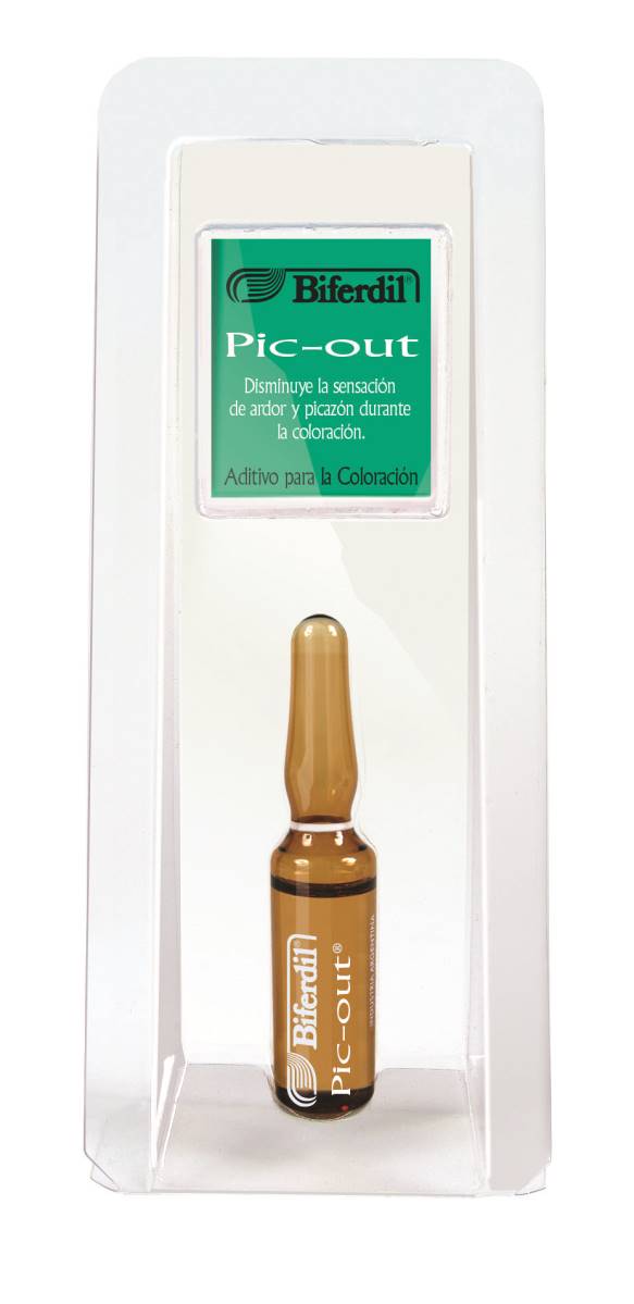 Ampolla pic-out Biferdil por 3ml, protege el cuero cabelludo y disminuye la sensación de quemazón, ayudando a evitar ardor o picazón.