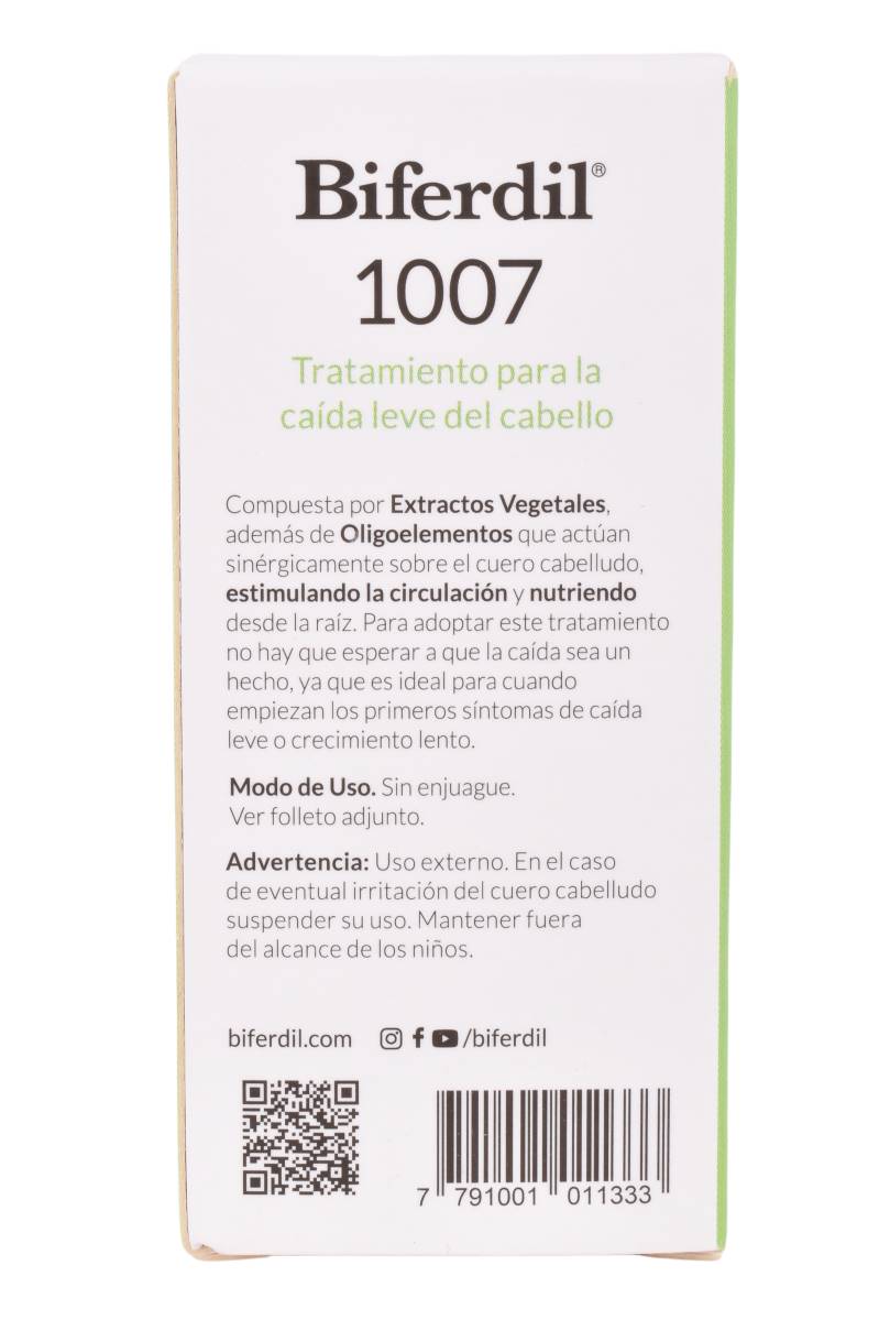 Ampolla Biferdil 1007 estimulante 20ml. Estas ampollas están hechas con el objetivo de corregir el desequilibrio sebáceo para poder frenar la caída crónica y localizada del cabello.