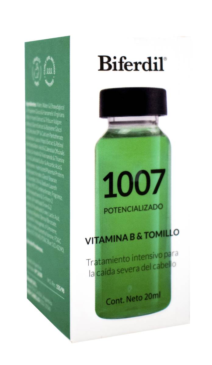 Ampolla Biferdil 1007 potenciada 20ml. Estas ampollas están hechas con el objetivo de corregir el desequilibrio sebáceo para poder frenar la caída crónica y severa del cabello.
