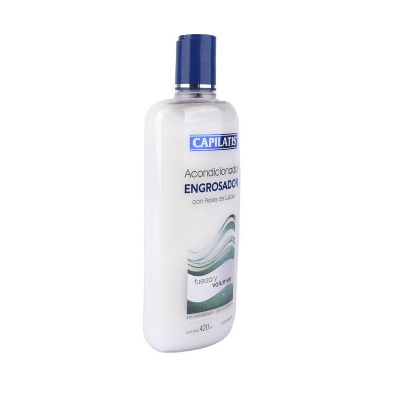 Acondicionador engrosador Capilatis fuerza y volumen con flores de lúpulo por 420ml, fortalece la fibra capilar aumentando el grosor del cabello otorga brillo.