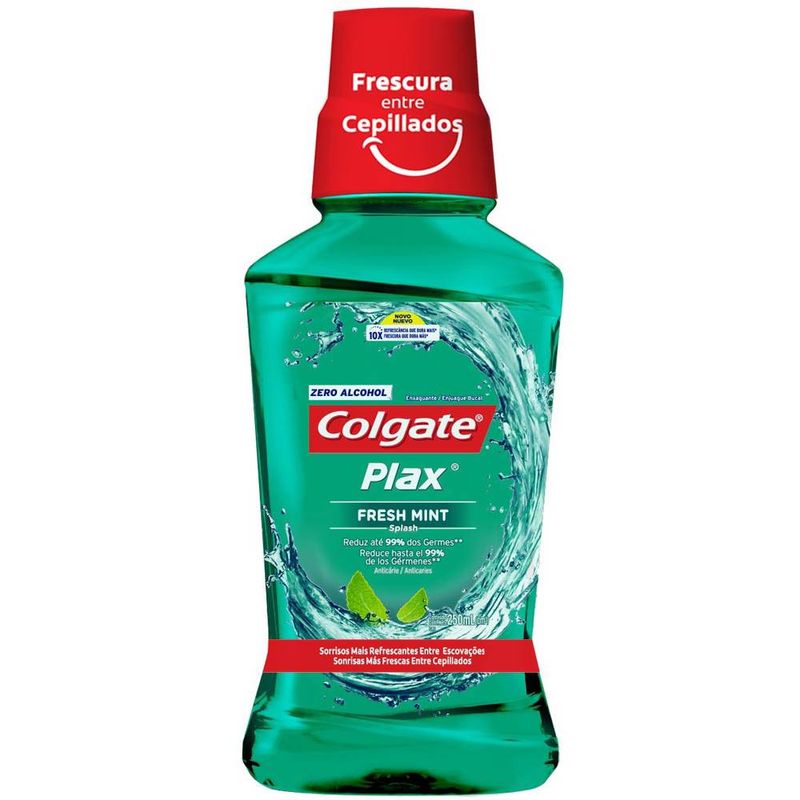 Enjuague bucal Colgate Plax Fresh Mint por 250ml, reduce hasta el 99,9% de los gérmenes y te brinda una sonrisa más refrescante entre cepillado.