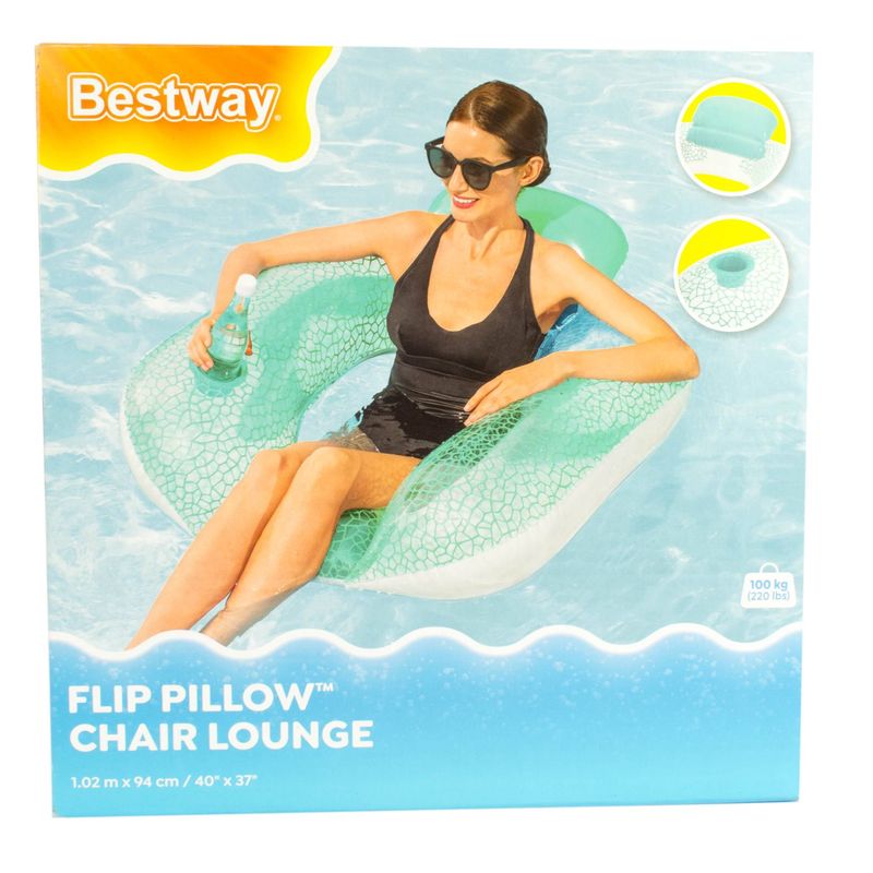 Sillón inflable Bestway ideal para relajarse en la pileta. Cómodo, resistente y con apoya vasos integrado. Perfecto para descansar o tomar sol en la pileta, con comodidad y estabilidad sobre el agua.