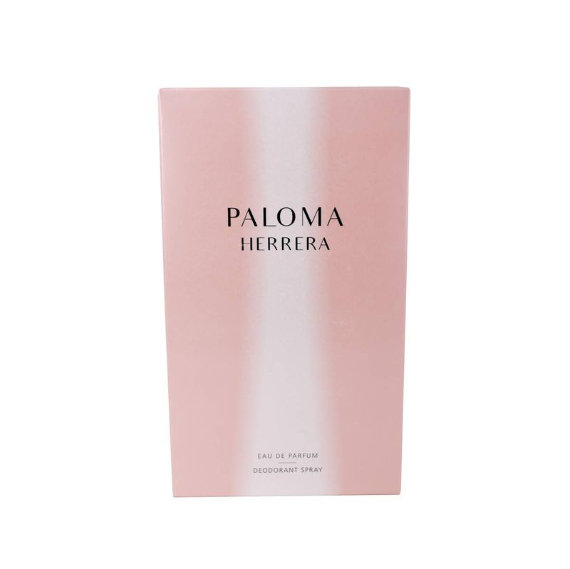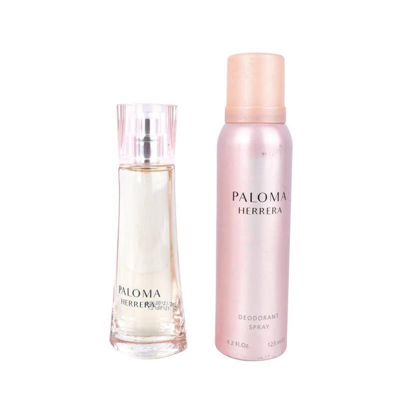 Estuche Eau de parfum + desodorante Paloma Herrera. Sutil sensualidad y gracia en una fragancia floriental frutada.Rosas, azahares, violetas y jazmines danzan con casís, pomelo, patchouli, cedro y sándalo. Ideal para cualquier ocasión.
