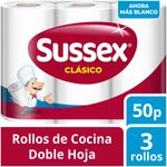 Rollos de cocina Sussex Clásico x3, doble hoja y alta absorción para tareas del hogar. Pack de 50 paños por rollo. Cómpralo hoy en Ferniplast.com.