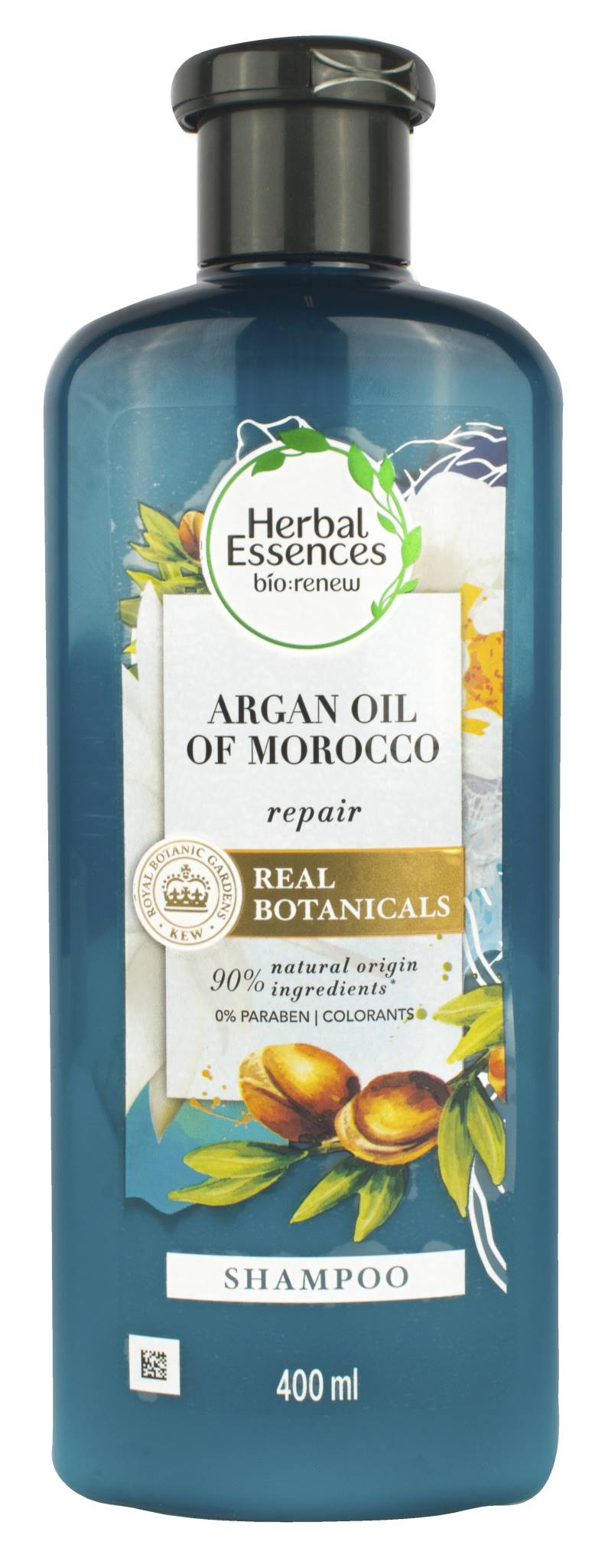 Shampoo Herbal Essences Reparación Argán 400 ml con aceite de argán y botánicos reales, ayuda a cuidar y reparar el cabello dañado. Cómpralo en Ferniplast.com