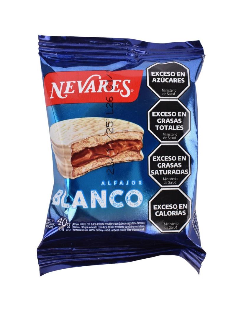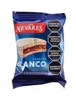Disfruta del auténtico sabor argentino con el alfajor Nevares de dulce de leche. Dos suaves galletas rellenas de cremoso dulce de leche y cubiertas de baño de repostería fantasía blanco. ¡Un clásico irresistible!