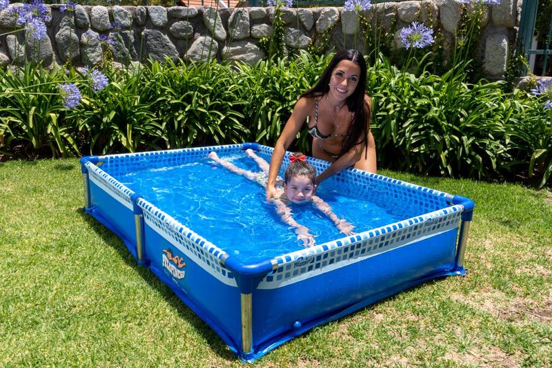 Pileta Pelopincho 1010 (1,55mts x 1,07mts x 0,30mts) es una pileta de lona compacta, con estructura metálica y altura contenida, perfecta para chicos y espacios reducidos (patios, terrazas). Materiales: lona PVC tricapa con tratamiento UV, caños de acero y esquineros reforzados. Armado rápido y diversión segura.