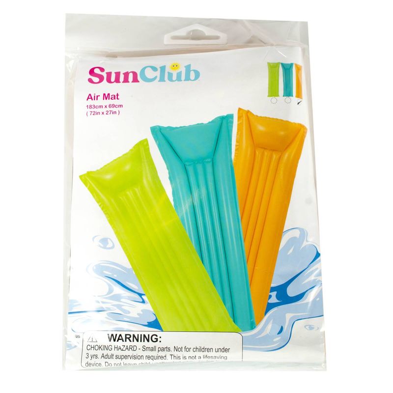 Colchoneta inflable SunClub 183x69 cm, ideal para relajarte en la pileta o disfrutar del sol en el agua. Colores vibrantes y diseño cómodo. Perfecta para descansar, tomar sol o flotar en la pileta con total comodidad y estabilidad.