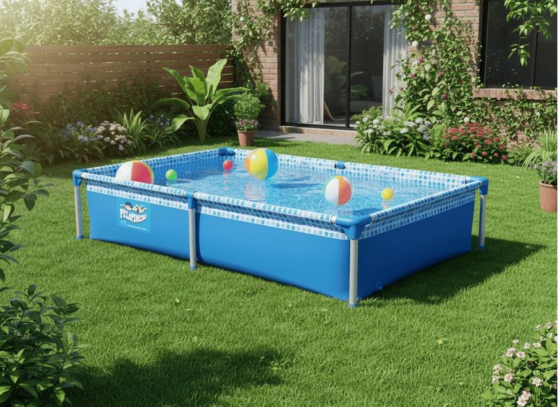 Pileta Pelopincho 1010 (1,55mts x 1,07mts x 0,30mts) es una pileta de lona compacta, con estructura metálica y altura contenida, perfecta para chicos y espacios reducidos (patios, terrazas). Materiales: lona PVC tricapa con tratamiento UV, caños de acero y esquineros reforzados. Armado rápido y diversión segura.